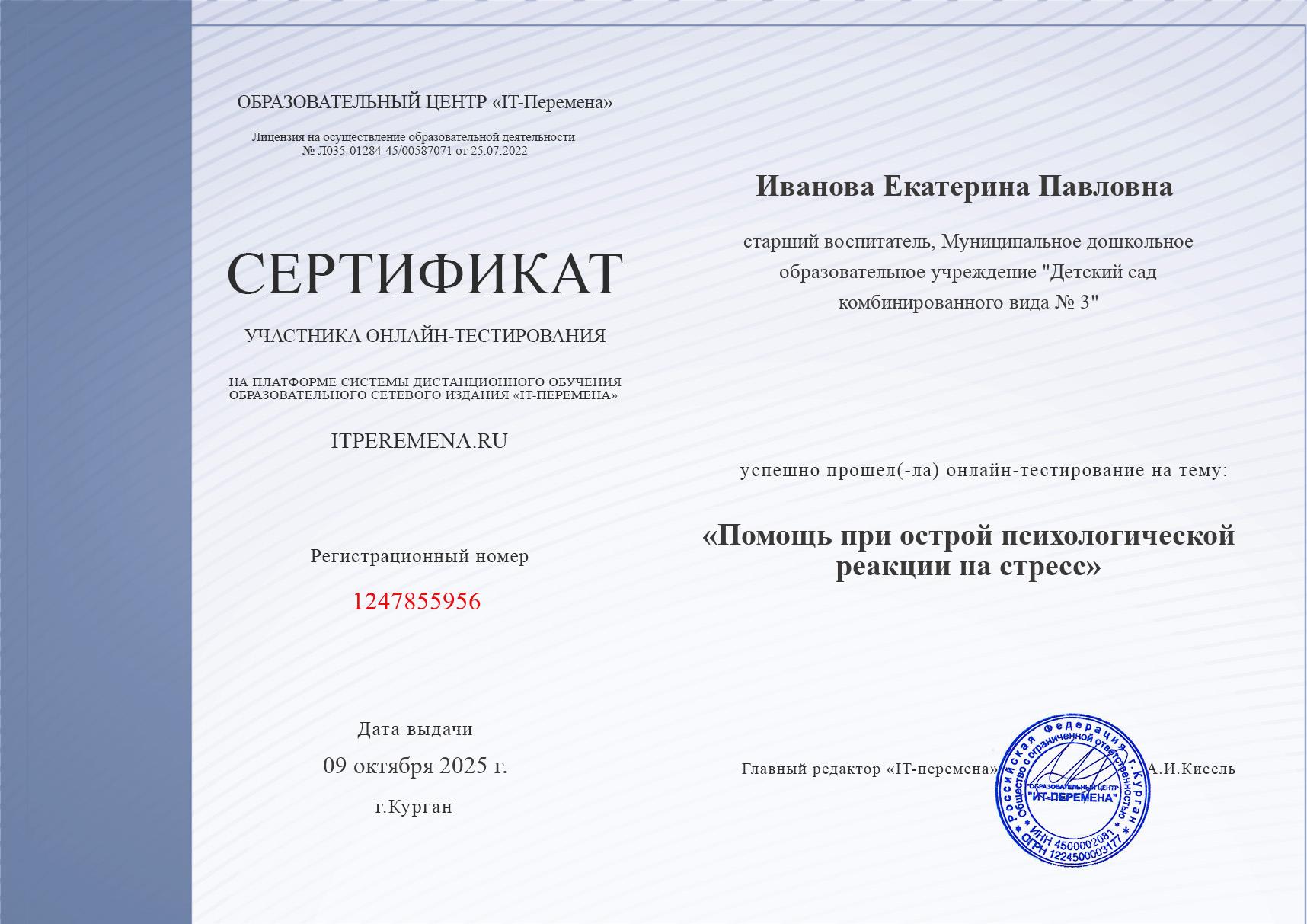 Персональный сайт старшего воспитателя МДОУ "Детский сад комбинированного вида №3" г.Свирска, Ивановой Екатерины Павловны